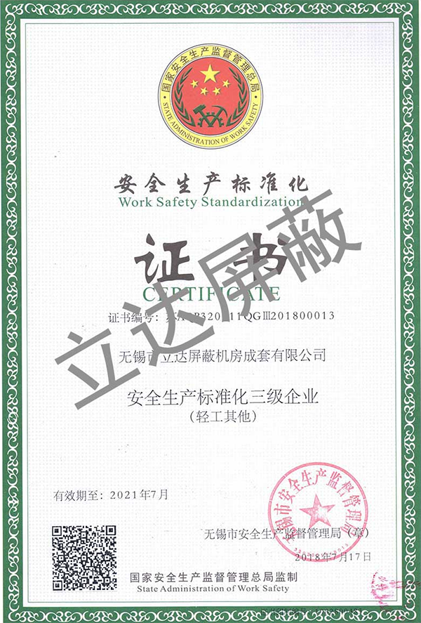 資質(zhì)證書 專業(yè)的電磁屏蔽機房的研發(fā)、設計與制造商