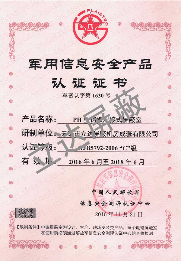 資質證書 專業(yè)的電磁屏蔽機房的研發(fā)、設計與制造商